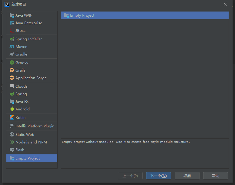 创建项目时支持创建空项目,我们可以先创建一个空项目,确定项目空间,再根据不同项目创建不同的module