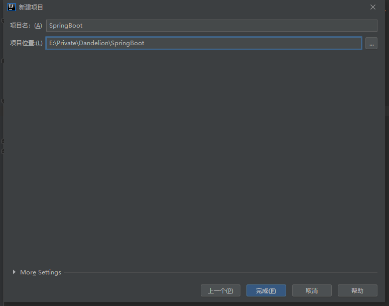 一个项目空间只能有一个项目,创建项目时会创建.idea