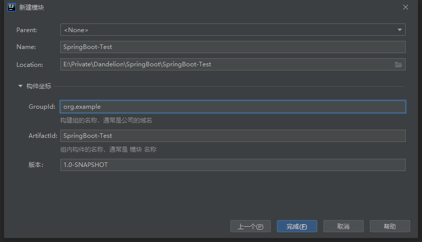 注意:Location选择刚刚创建的空项目目录下,之后再创建其他项目也要选择刚刚创建的空项目目录下。