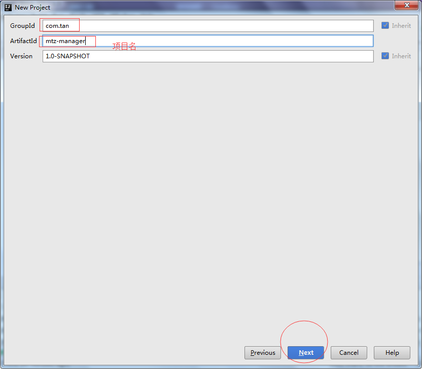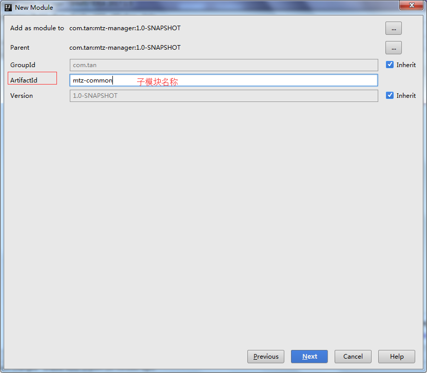 3.下一步到这个页面我们填写子工程名称,然后-->Next