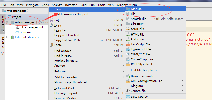 新建一个mtz-admin模块,以mtz-admin为例,此模块为web模块