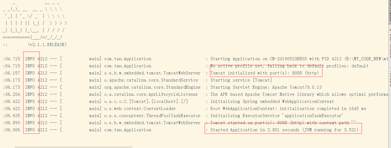 3.完了之后我们得到一个Spring Boot应用,启动Application,得到如下结果,则表示创建成功完成。