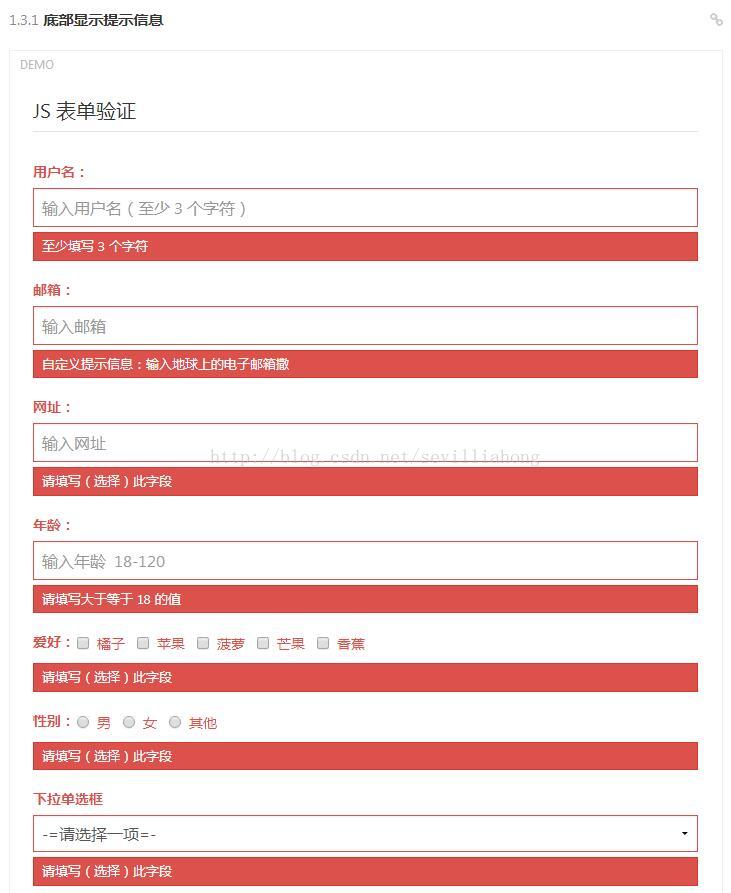 先将目标表单绑定一个validator函数,然后在需要验证的字段加上属性(required、pattern、mixlength等等),pattern除了HTML5中已有的email、url等正则,还可以自定义,最后填充function submit来确定表单信息都合法之后的操作。然后我把这个框架运用到了自己的项目上,添加了自定义正则表达式