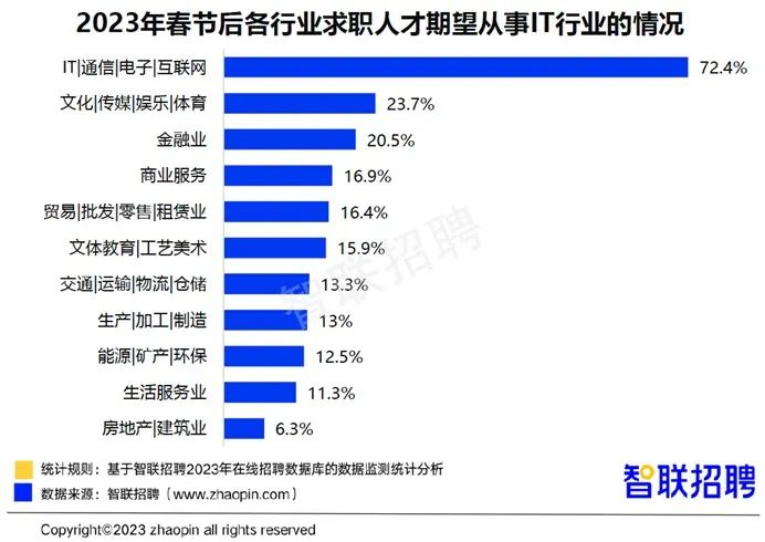 根据智联招聘公布的2023春节后求职数据报告,程序员IT相关岗位仍是第一梯队的中流砥柱。