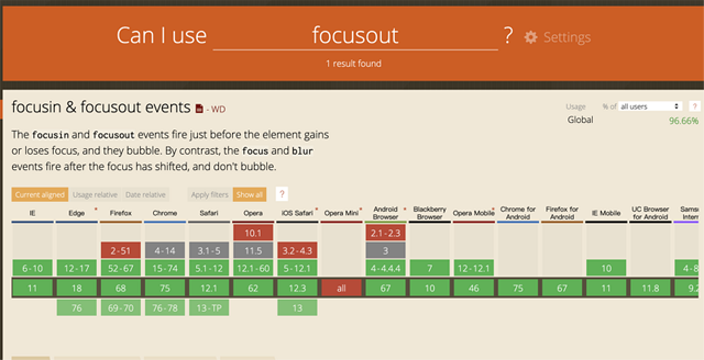 是 IE 浏览器才支持的一种 DOM 事件。而实际上我们看 MDN 文档发现,这两个事件已经成为 DOM 3 规范的一个标准,而且可支持的浏览器数量并不少。