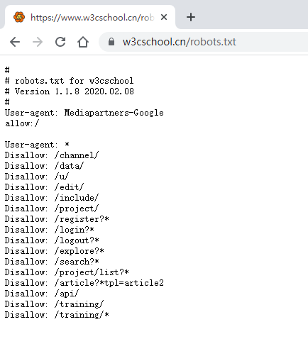 Robots协议也叫爬虫协议、机器人协议等,全称是“网络爬虫排除标准”(Robots ExclusionProtocol),网站通过Robots协议告诉搜索引擎哪些页面可以抓取,哪些页面不能抓取,例如: