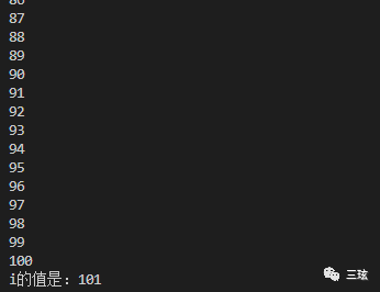 第二个判断式,判断 i 是否小等于100,是的话就执行下面的打印命令,不是的话就结束循环不再运行。