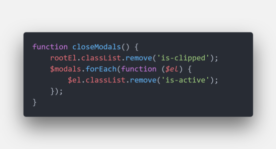 当弹窗关闭时,通过JS删除掉页面的 css 类:is-clipped