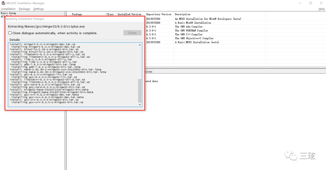 点击Close关闭后,MinGW下载安装就已经完成了。