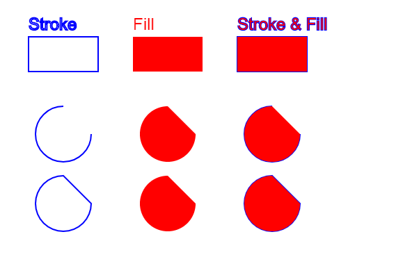 使用这些绘制系统时,你需要先定义一个路径,然后再对其进行描边或填充,也可以描边加填充这样图形才能显示出来。