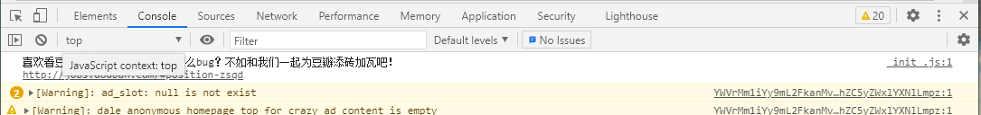 很多细心的小伙伴会发现控制台输出的代码是一行一行的。没错,他们就是一行一行的,而且每行的最右边都有一个对应的js名称和js行数,一行对应一个输出(或者报错)。但是有些时候报错会像java(或者python)一样抛出一堆的堆栈调用。我们可以点击右边对应的行数前往对应的js代码行中,这样就能快速确定报错的代码在第几行了。(之前说过如果对字符画感兴趣的小伙伴可以用这种方式找到对应的字符画生成函数)
