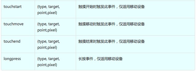 根据百度地图官方解释,在移动端 H5 页面中可监听下面这 4 个事件: