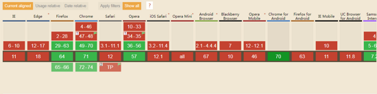 从上图可以看到,主流浏览器Firefox、Chrome、Safari、Opera等等已经全面支持。