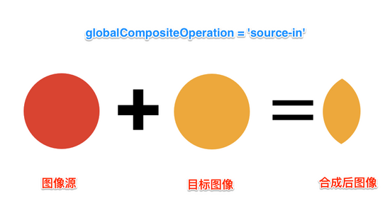 的橙色圆形,在这里把它称为图像目标。在图像源和目标图像之间设置 globalCompositeOperation