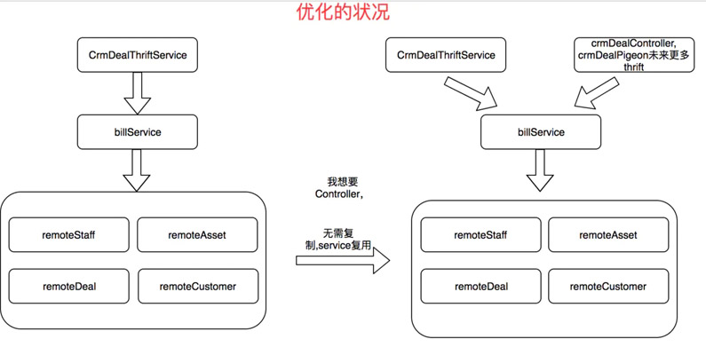 如果我们把业务编排放在 Controller 层去做的话,如果以后我们要接入 Thrift,我们这里又需要把业务编排在做一次,这样会导致我们每接入一个入口层这个代码都得重新复制一份。