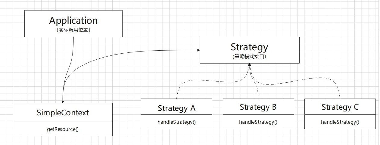 然后我们需要写一个 SimpleContext 类来存储我们的策略类别,这时候就用到了 Spring 的依赖注入和自动发现。