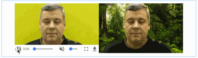 Canvas同样可以做到,并且可以处理视频帧,其中的原理是一样的 —— 将每个视频帧中绿幕的像素块透明度置0即可。像这样 ——