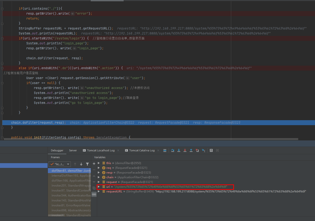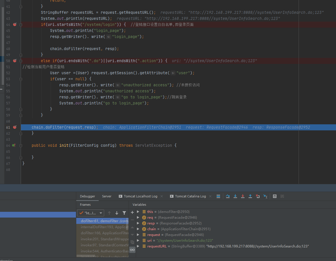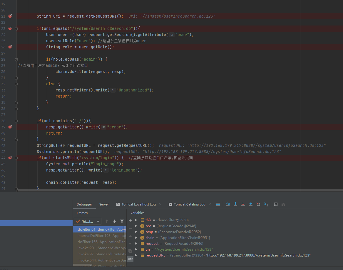 看到代码中只是对比了URI是否为/system/UserInfoSearch.do