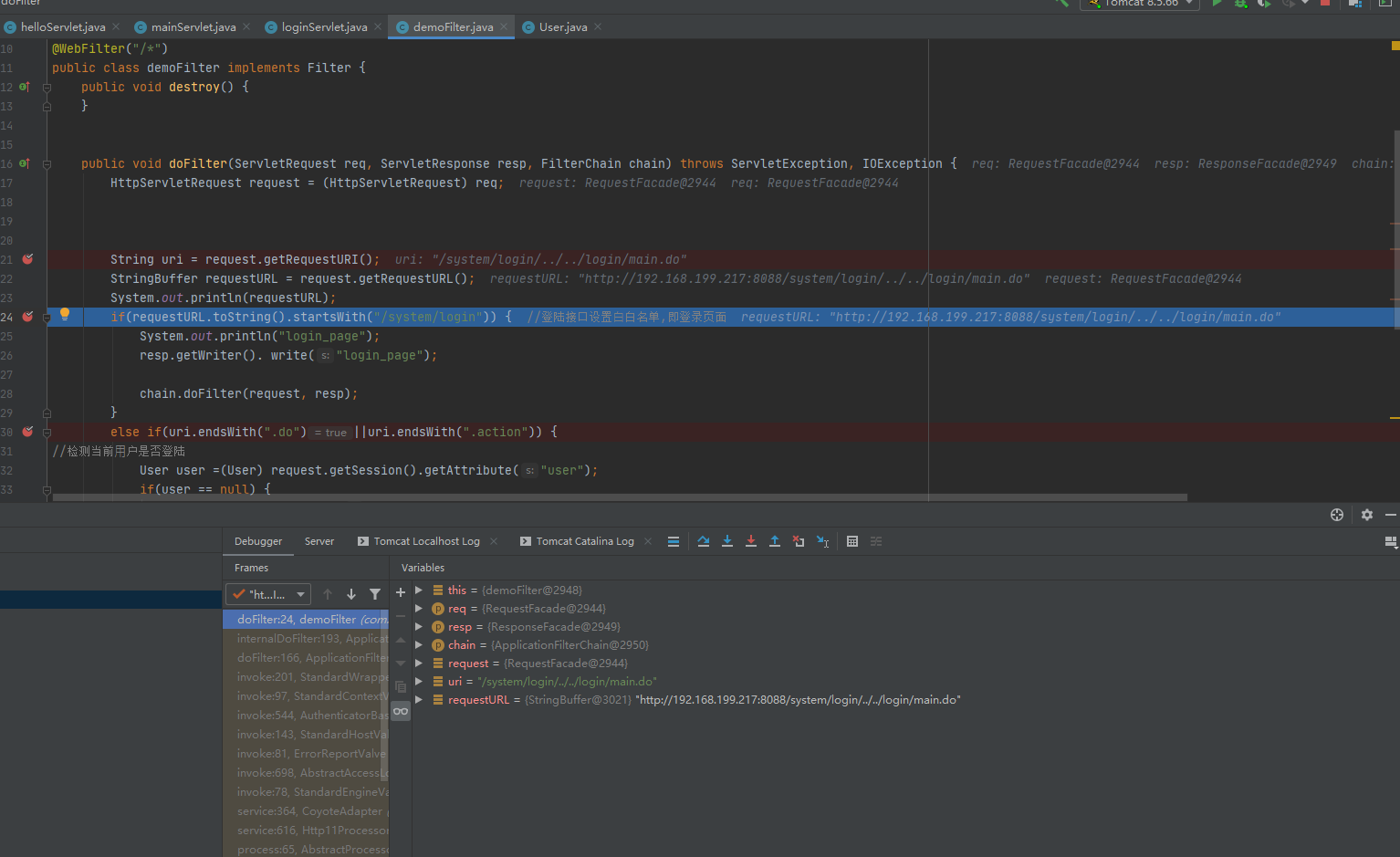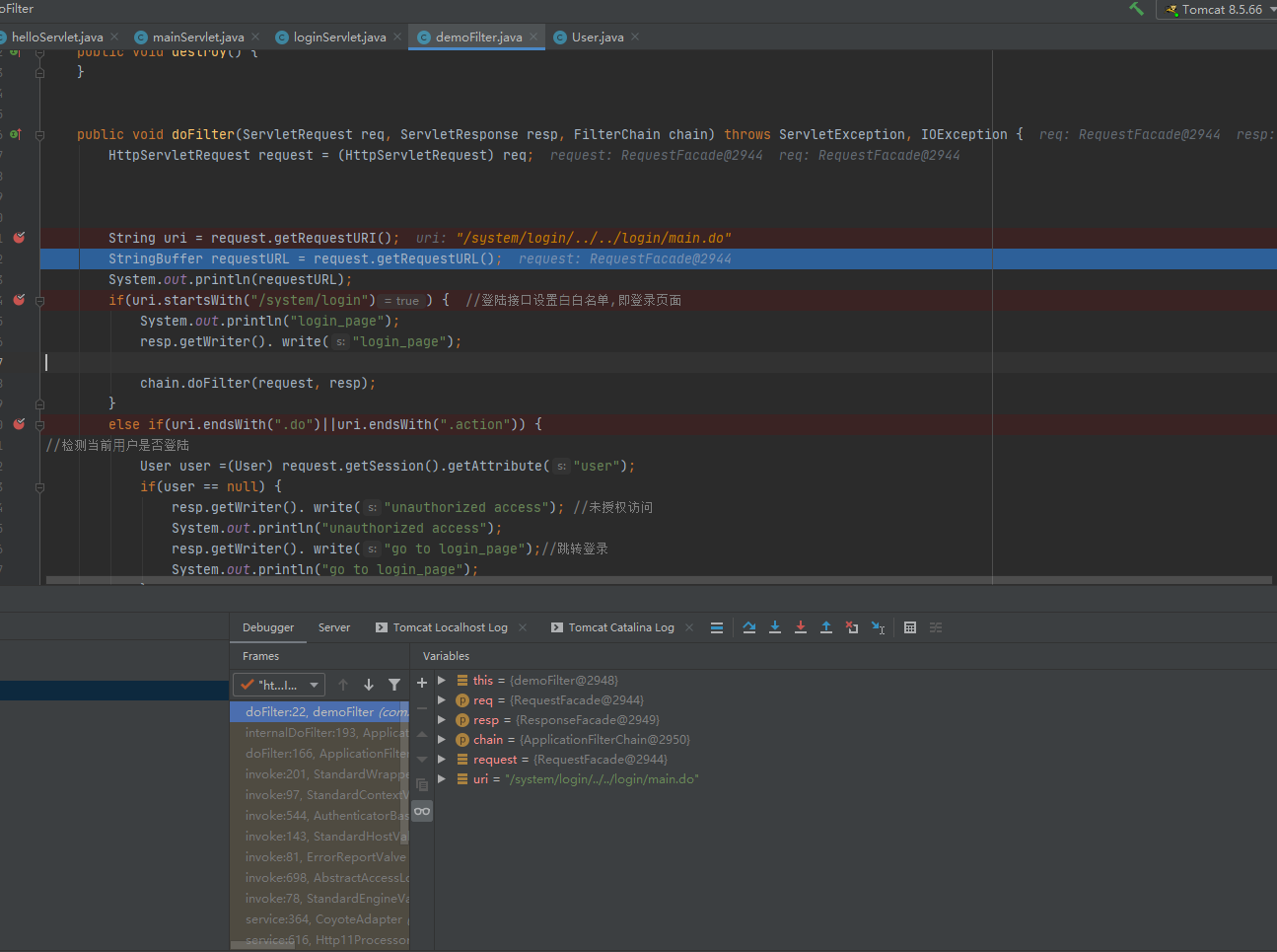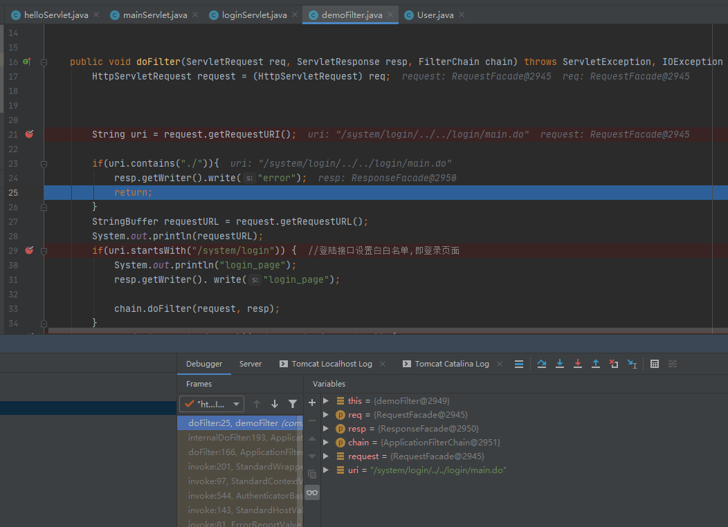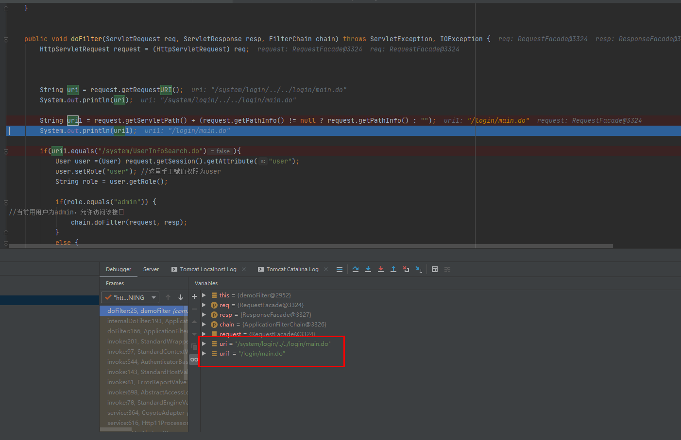 看到代码中只是对比了URI是否为/system/UserInfoSearch.do