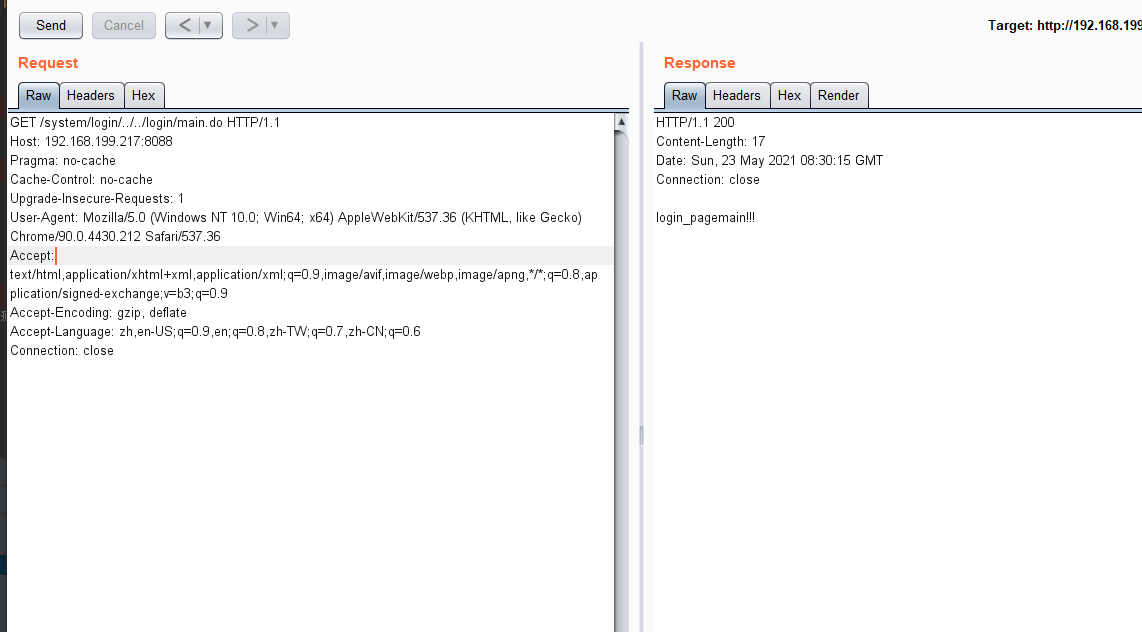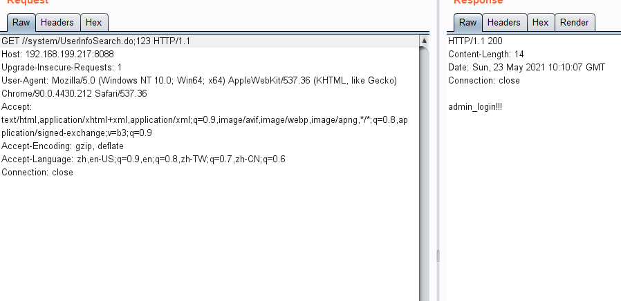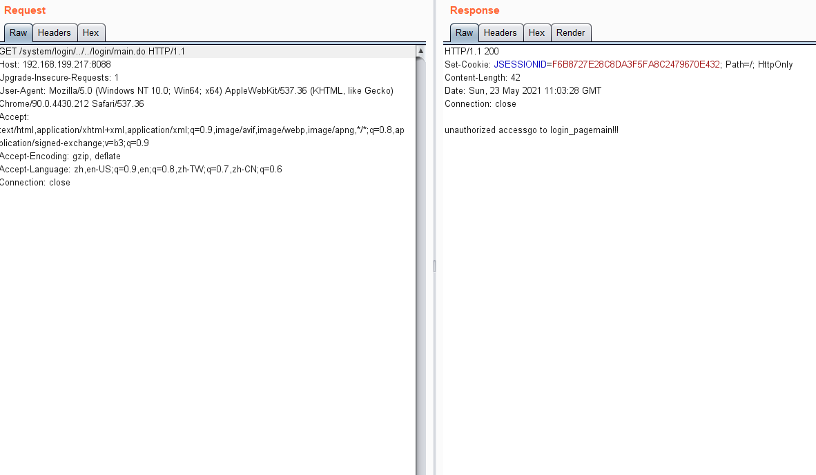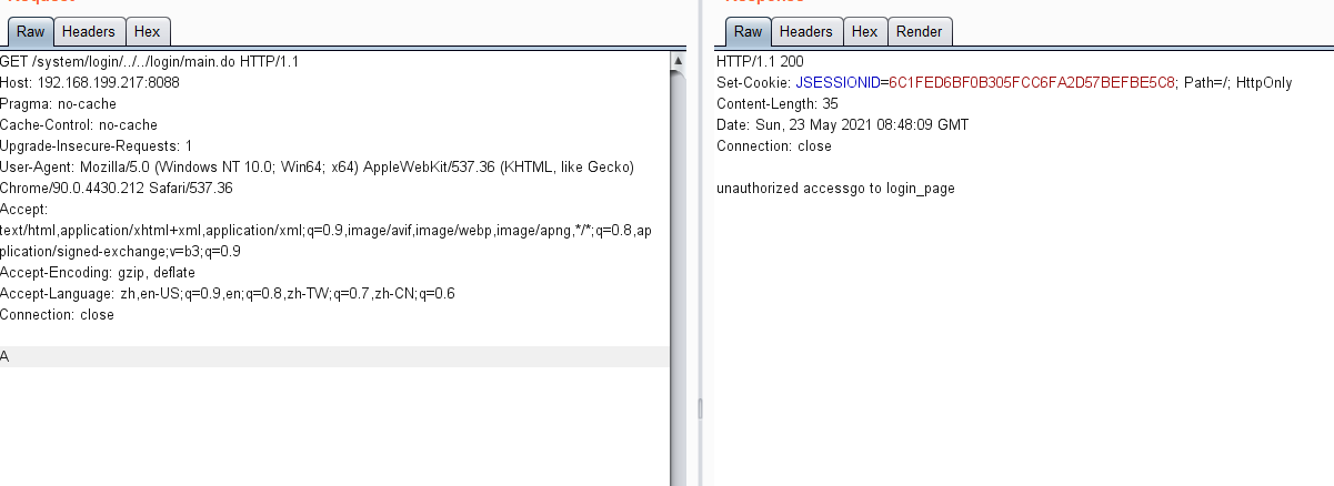 符合匹配的规则,而匹配上该规则后则是直接放行,让系统认为访问路径是一个登录的路径,但在后面加入2个../