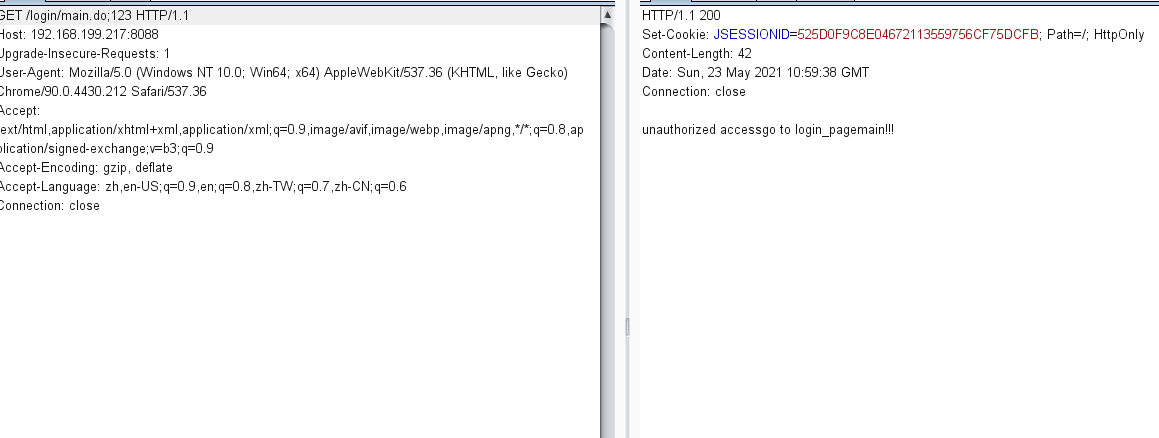 这里就绕过了,权限控制,直接能访问到main,而不是显示未授权访问。在绕过时候可以找一些白名单的路径,然后使用../
