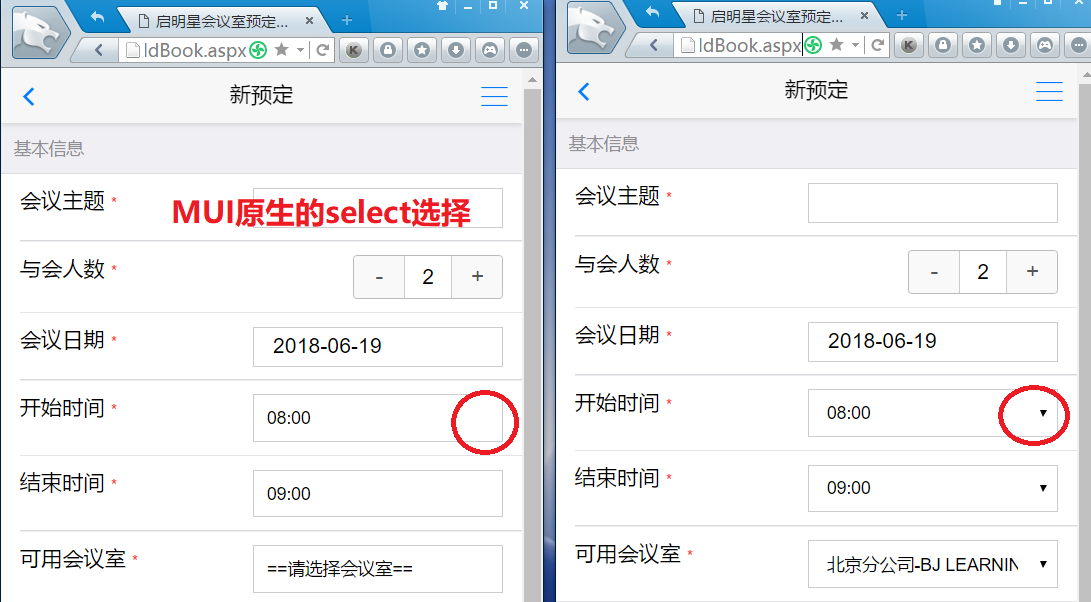例如下图左图是 MUI 里,直接使用<select>标签,是没有下拉箭头的,这会让用户迷惑。