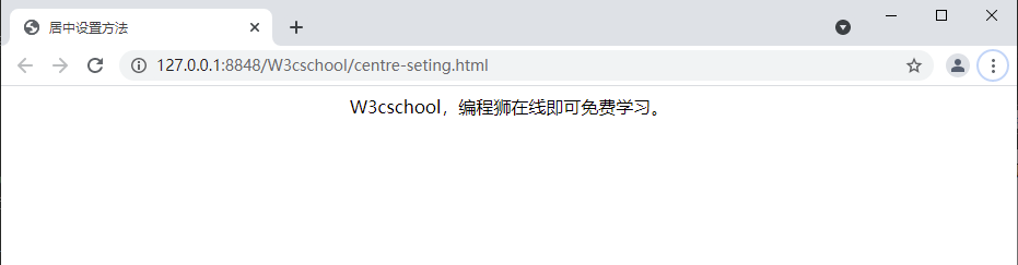 在这个代码和截图中我们就可以清楚地看到字体居中了,如果没有添加 CSS样式的话,那么字体一般是默认靠左的。