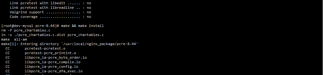 进入解压好的pcre-8.44目录,执行以下命令做编译前准备: