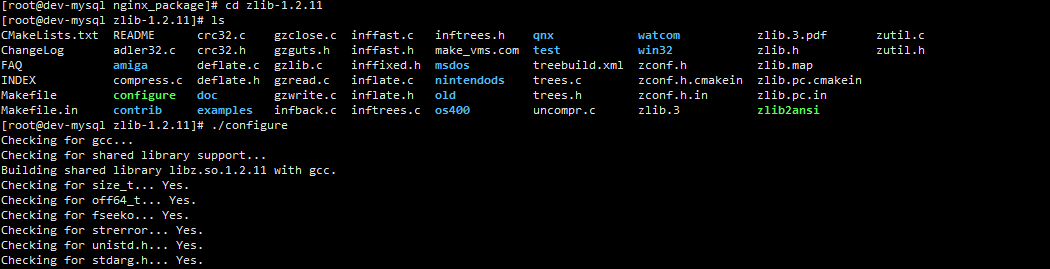 进入解压好的 zlib-1.2.11 目录,执行以下命令做编译前准备: