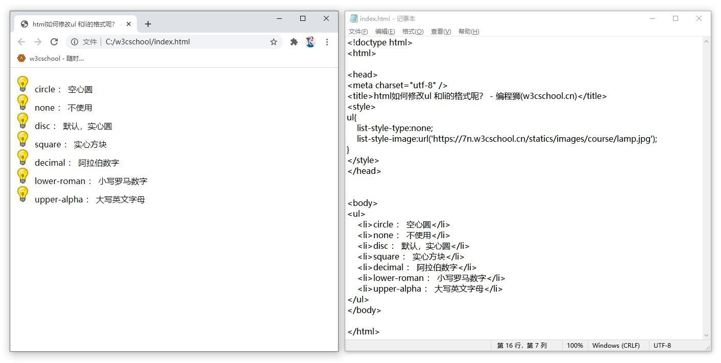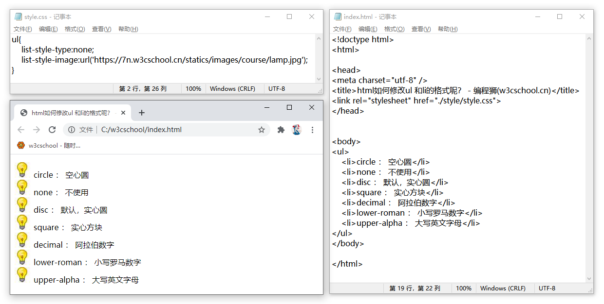 点击 CSS无序列表在线实例 在线实操一下吧~