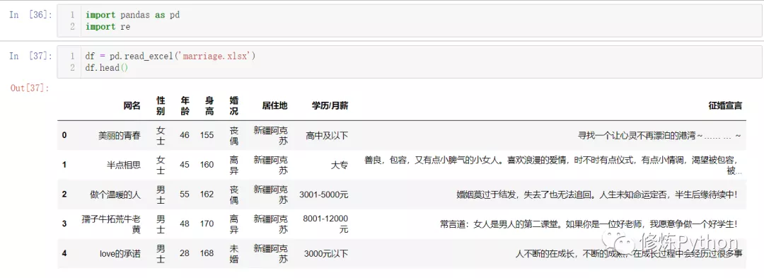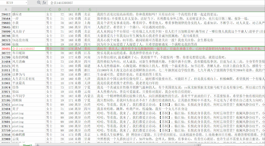 # 提取性别 征婚宣言这两列数据就好