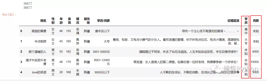 获取到的数据里,居住地是各地区的,为了便于分析,需要处理成省级行政区,学历/月薪那一列数据,有些是月薪,有些是学历,可以分别处理成两列数据,是学历的,提取出学历层次,月薪标记为 "未知";是月薪的,提取出月薪并计算,学历标记为 "未知"。