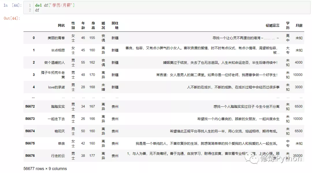 df2 = df[df['性别'] == '女士']['征婚宣言']