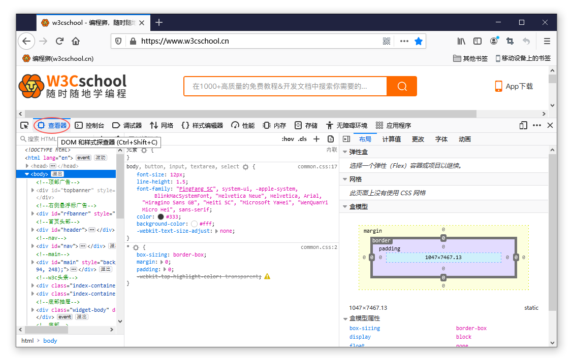 也会调出交互式开发人员工具。该工具提供了与源代码和 CSS 设置的交互,使用户可以实时查看代码中的更改如何影响网页。