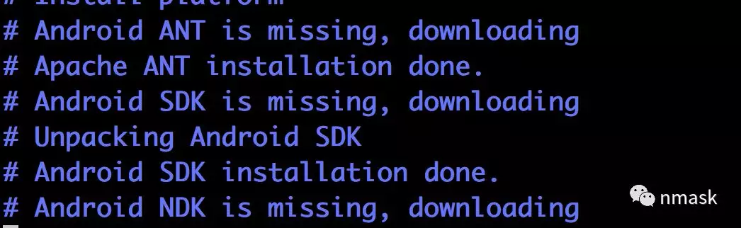 在第一次运行以上命令的时候,会自动在系统中下载安卓 sdk 等必要文件,如下图。(过程需要翻墙,而且有很多依赖需要下载)