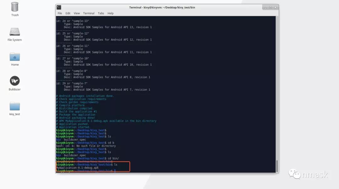说明:这里只演示打包成 apk 文件,iso 平台的可自行研究,Buildozer 参考文档 。