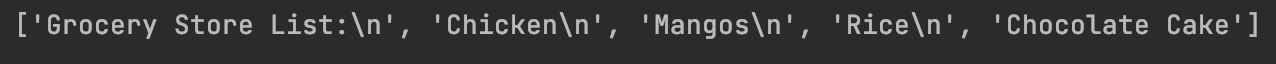 在此示例中,我们将使用readlines()方法将杂货项目打印为列表。