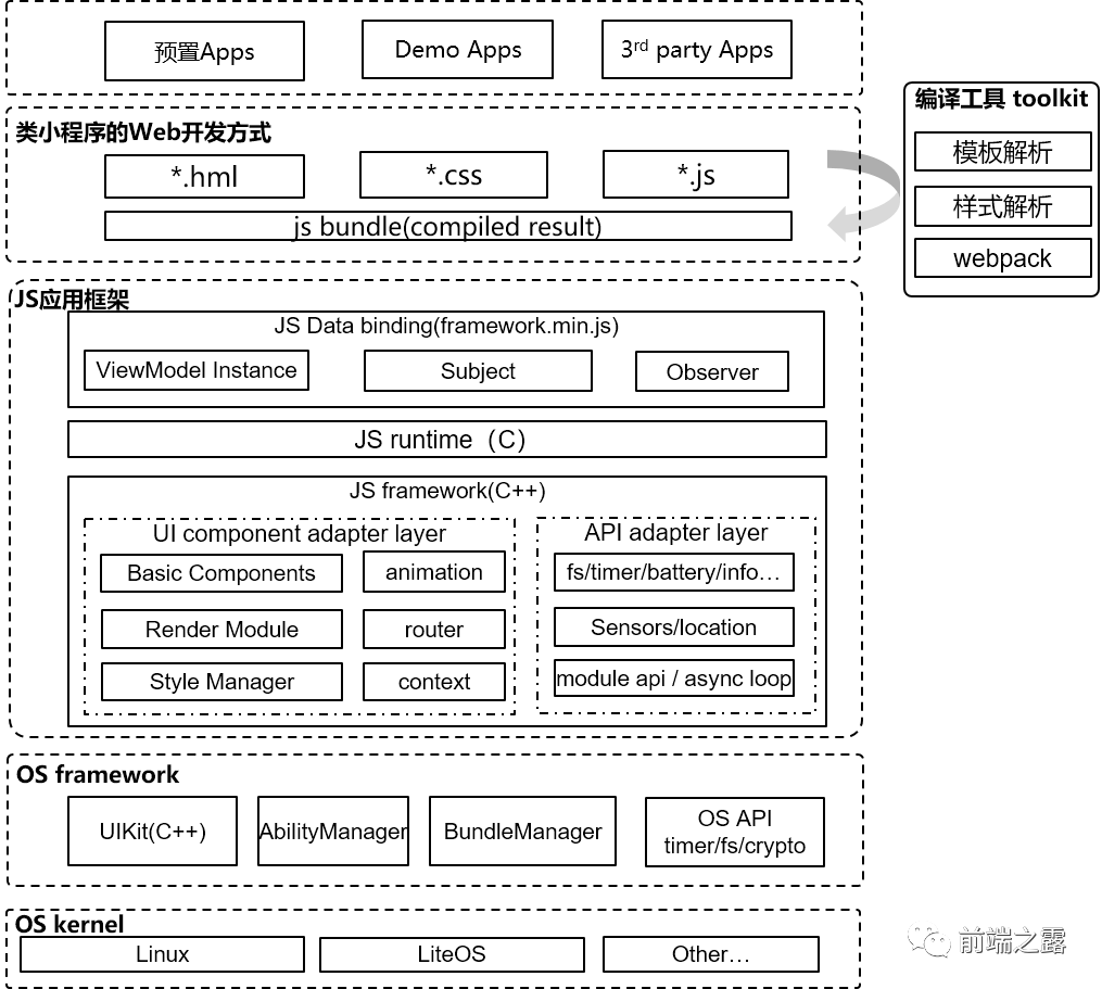 作为 JS 应用开发框架的轻量实现,鸿蒙提供一套跨平台的类 web 应用开发框架,通过 Toolkit