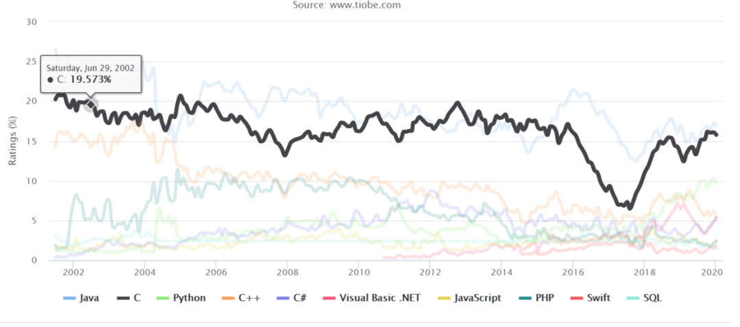 语言都有着不小的功劳。以至于这么多年来,在Tiobe