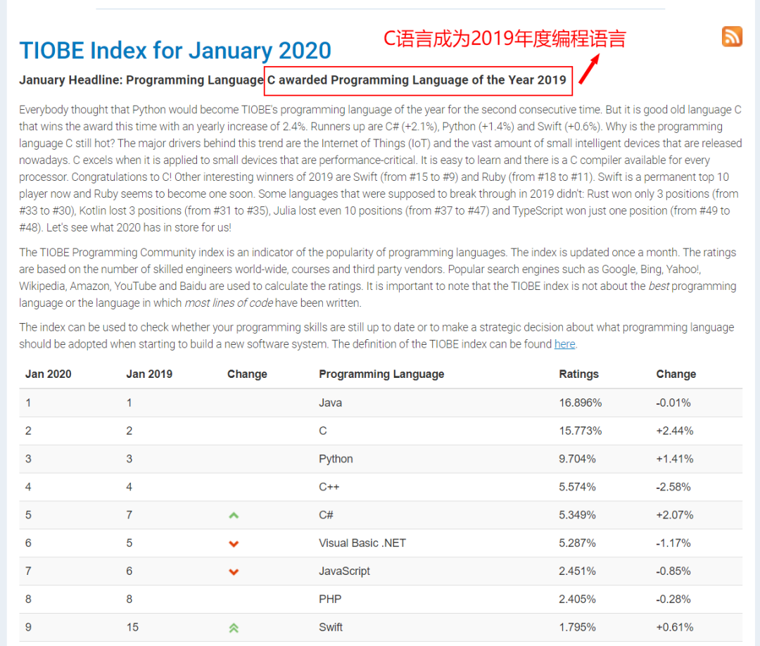 年度编程语言」。虽然这只是一个看起来很无聊的排名,但多多少少能说明一些事情。
