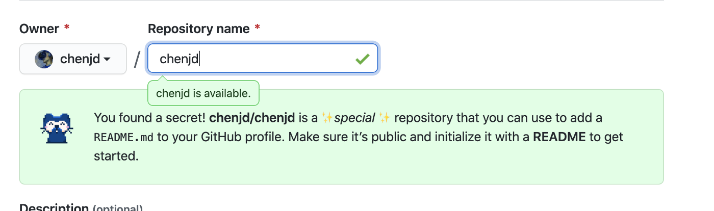 账户用户名相同的新仓库,这是一个特殊的仓库,你可以用它在你的Github