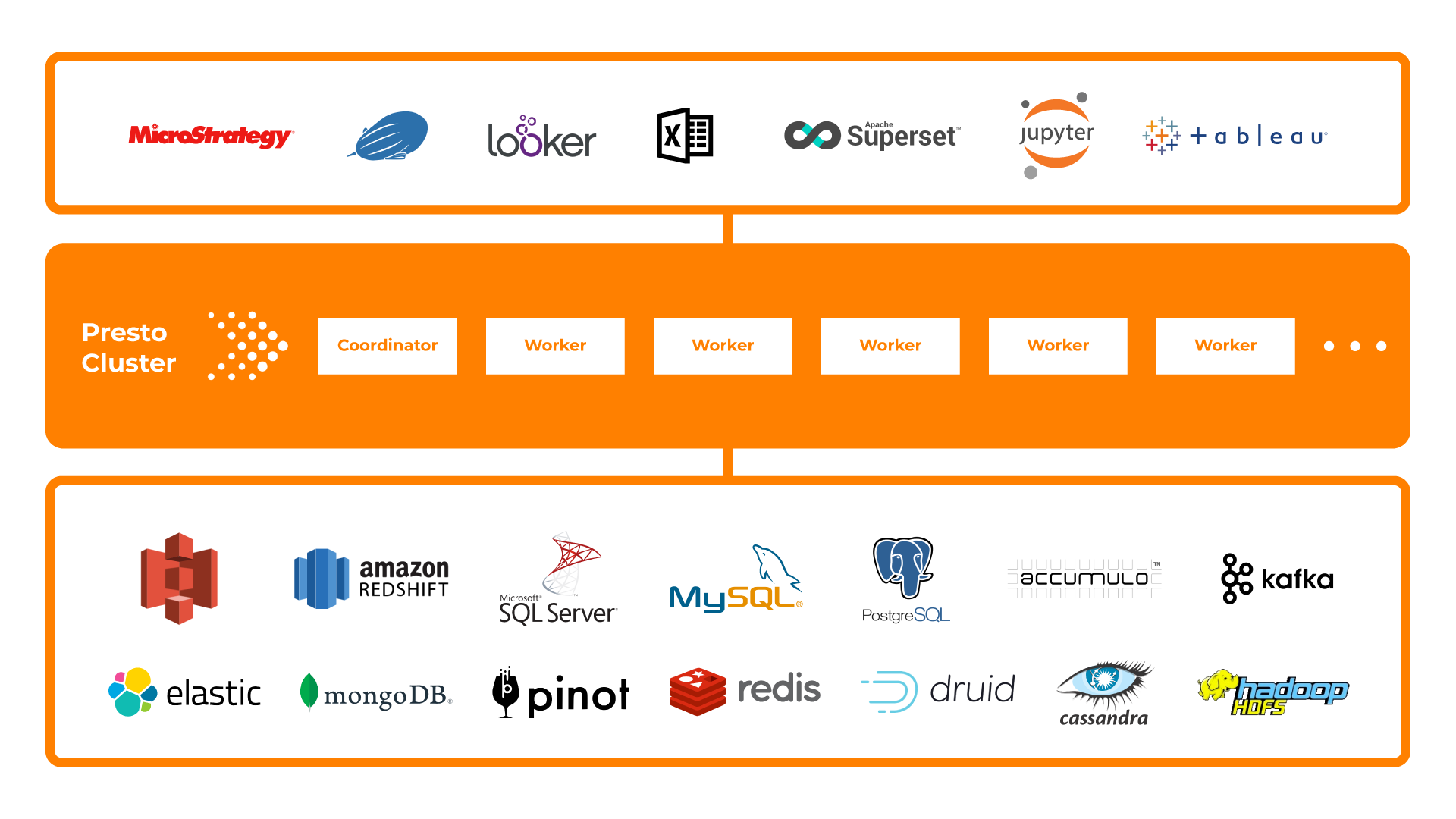 Presto 旨在与现有数据生态系统无缝集成,无需对正在进行的系统进行任何修改。这就像使用额外的更快的数据访问接口为您现有的堆栈增压。