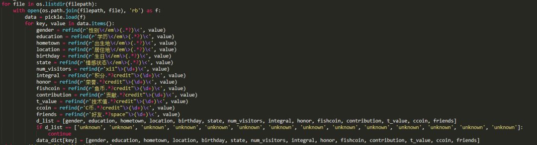 接下来我们从每个鱼油的个人主页中提取一些有用的数据,例如性别、生日、出生地、学历等内容,具体代码实现如下: