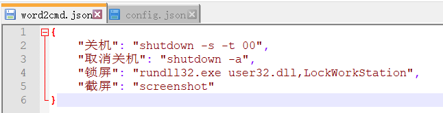 cmd命令太长手机上打起来不方便或者记不住怎么办?你可以在word2cmd.json中设置快捷命令语: