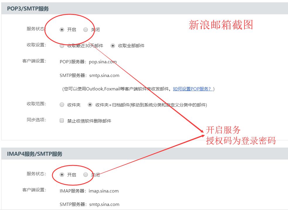 密码应为客户端授权密码,而非登陆密码。当然新浪邮箱的登录密码即为客户端授权密码。