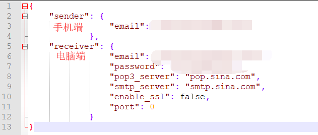 设置电脑端和手机端邮箱的信息。手机端邮箱的信息用于验证发信人是否为合法控制电脑者,电脑端邮箱的信息用于电脑端接收和发送邮件。