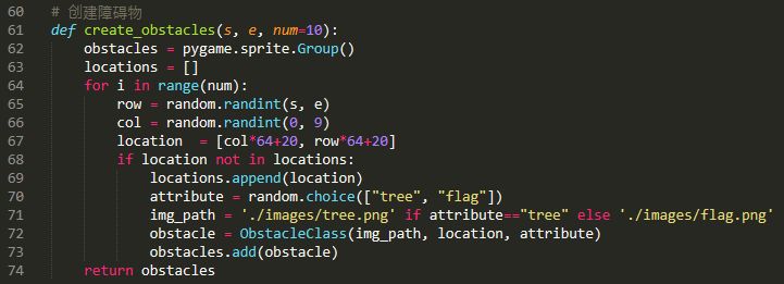 现在我们需要定义一个随机创建障碍物的函数,以便在游戏主循环中调用: