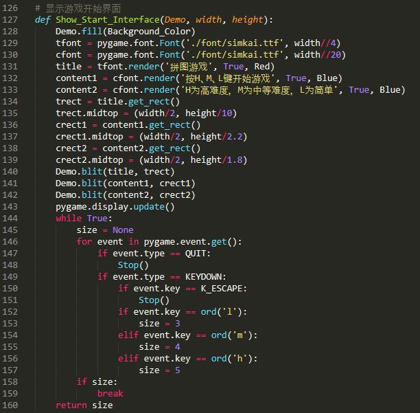 当玩家完成拼图后,需要显示游戏结束界面,和游戏初始界面类似,实现起来都比较简单: