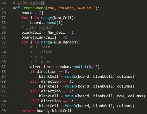 首先,我们需要打乱拼图,但是随机打乱很可能导致拼图无解,因此我们通过随机移动拼图来实现打乱拼图的效果,这也是我们先定义拼图的移动操作的主要原因: